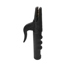 This 300 Amp electrode holder features an ergonomic handle, adjustable for left or right-handed use. The five-groove jaw grips rods from 3/32" to 3/16". Includes both strong and softer springs for user preference. Molded from high-strength polymer and machined from high-conductivity brass for durability and cool operation.